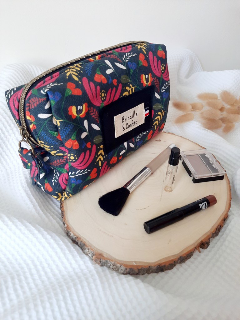 Cette trousse à maquillage est une petite capsule d’émotion : elle est confectionnée à partir de tissus de seconde main (de vêtements d’enfants ou de textiles familiaux…) qui retrouvent une nouvelle vie entre vos mains.