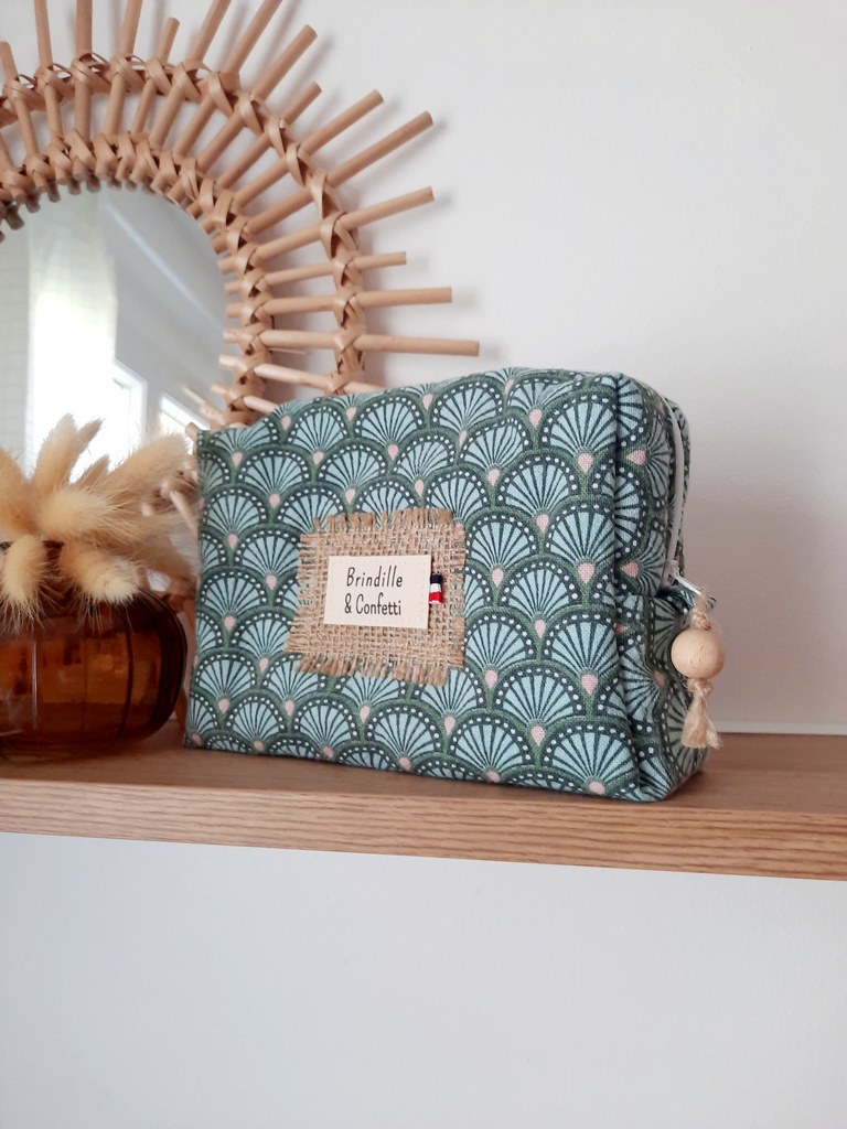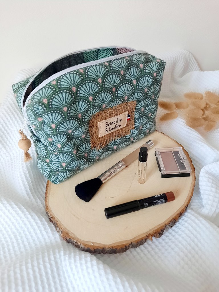 Cette trousse à maquillage est une petite capsule d’émotion : elle est confectionnée à partir de tissus de seconde main (de vêtements d’enfants ou de textiles familiaux…) qui retrouvent une nouvelle vie entre vos mains.