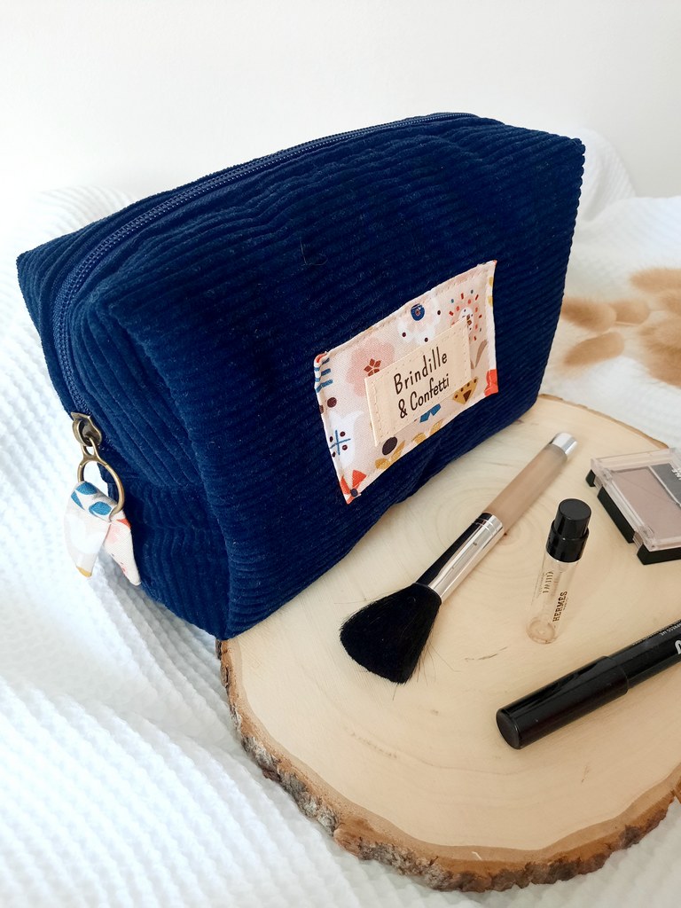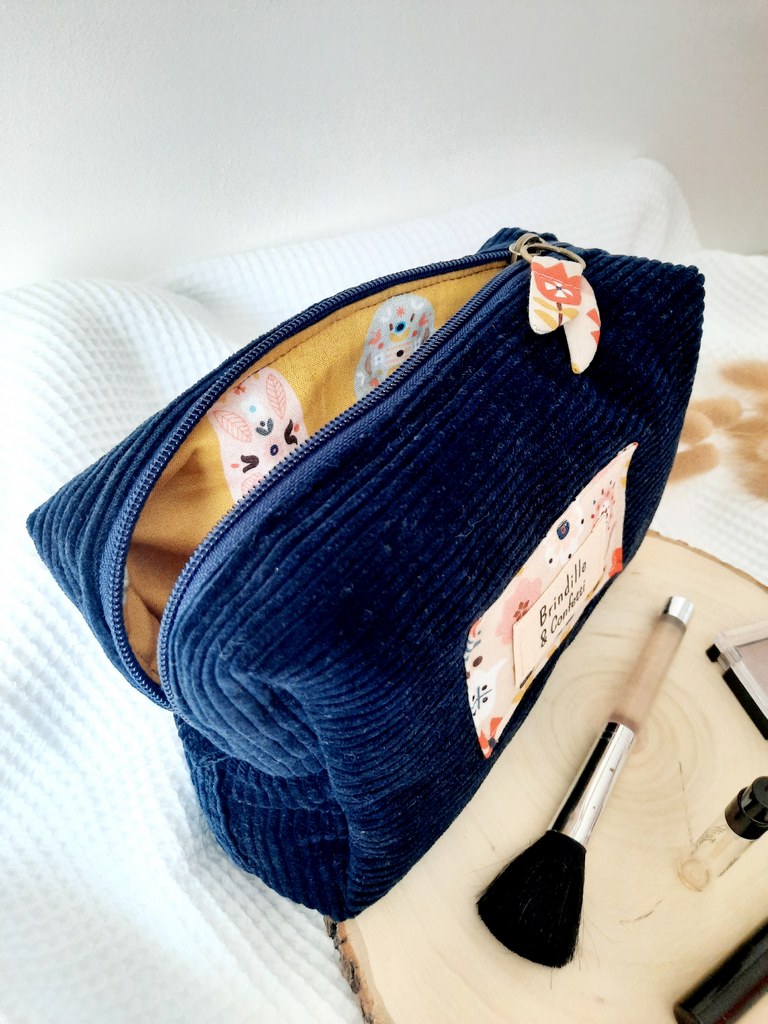 Cette trousse à maquillage est une petite capsule d’émotion : elle est confectionnée à partir de tissus de seconde main (de vêtements d’enfants ou de textiles familiaux…) qui retrouvent une nouvelle vie entre vos mains.
