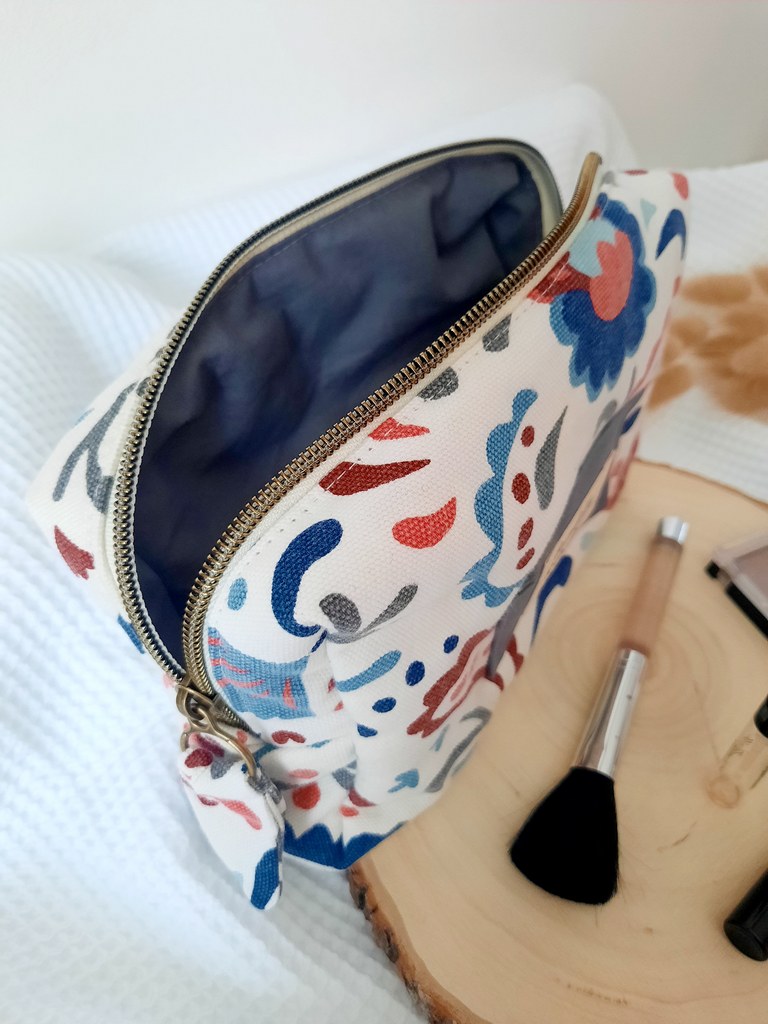 Cette trousse à maquillage est une petite capsule d’émotion : elle est confectionnée à partir de tissus de seconde main (de vêtements d’enfants ou de textiles familiaux…) qui retrouvent une nouvelle vie entre vos mains.