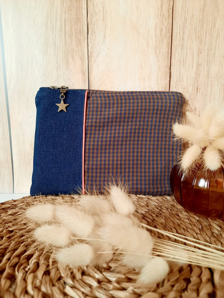 Soyez le premier à laisser votre avis sur “Trousse upcyclée Denim et Petits carreaux bruns”